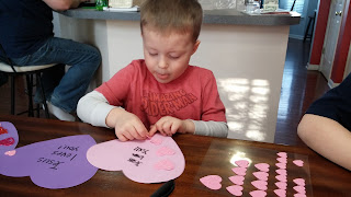 Our family had a wonderful weekend! It was a weekend full of love!!! We started by making lots and lots of valentines to take to our favorite nursing home. We had so much fun delivering these valentines. The residents are starting to recognize our family when we visit and our boys are starting to connect with some of them. It is so heart warming to watch my boys bring joy so many people. Dylan cannot wait to go back so that we can talk with some of the residents again and Evan, he was immediately best buddies with a few residents. Tyson especially brings all the older ladies a lot of joy. They can't get over how cute he is! Visiting Brookdale Nursing Home is always such a blessing to our family! I hope that it is as much of a blessing to the folks that live there!